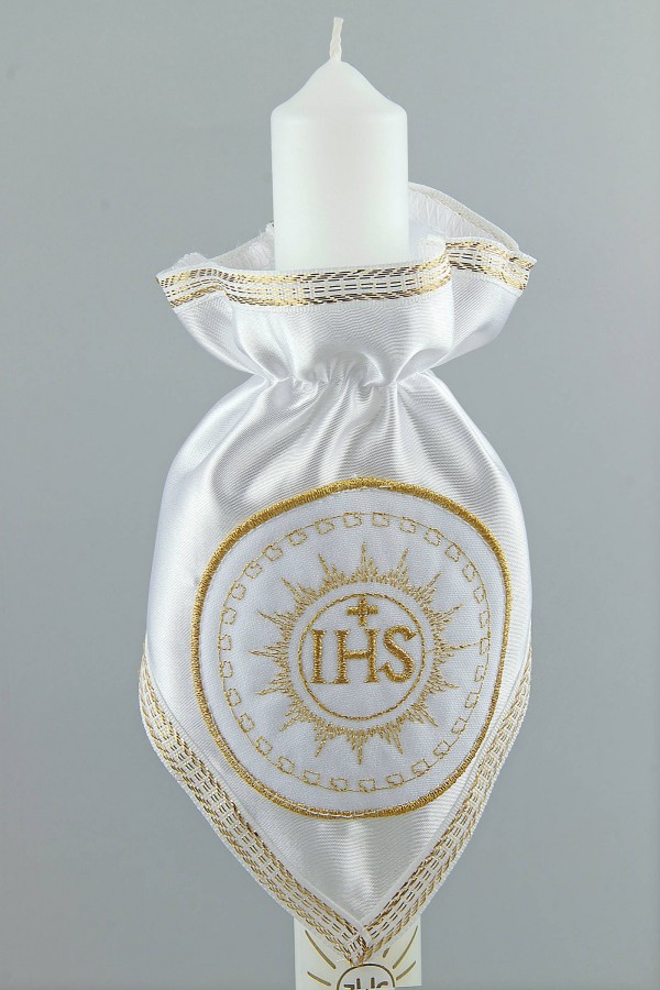 Kommunionskerze, hergestellt in Polen unter Verwendung von Wachs von sehr hoher Qualität. Ein elegantes Erinnerungsstück an den Empfang des Sakraments der Erstkommunion. Artikel aus der Kategorie: Abendmahlskerzen.