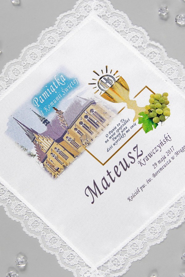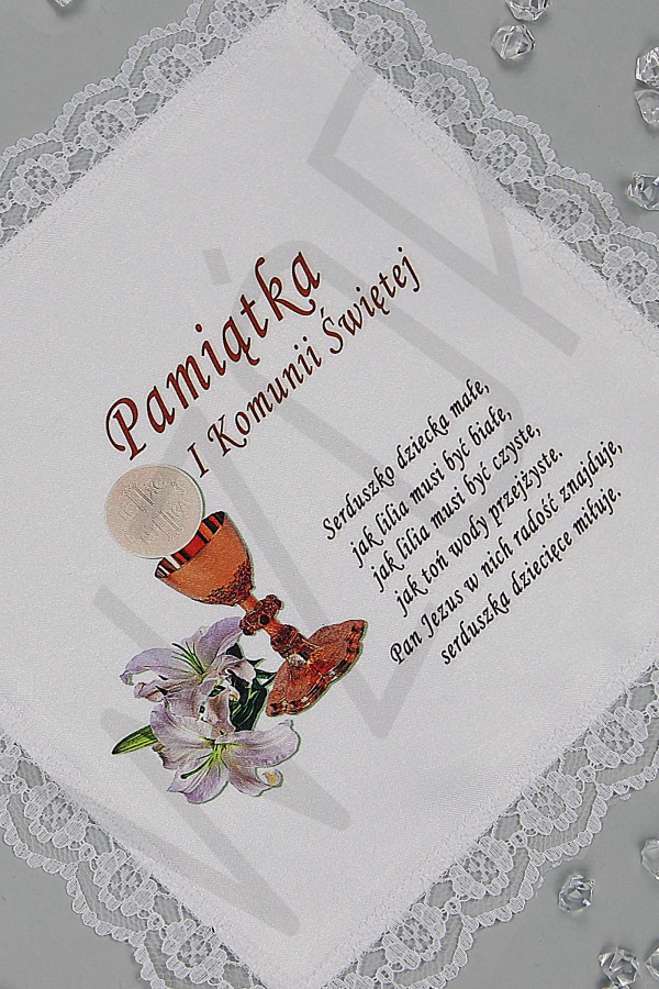 Die erste heilige Kommunion ist ein besonderer Tag, der ein Leben lang in unseren Herzen bleibt. Um dieses Ereignis in der Erinnerung Ihres Kindes zu verankern, ist es eine gute Idee, ihm ein einzigartiges Geschenk zu machen, das es an diese wunderbare Zeit erinnert. Wir möchten Ihnen eine große Auswahl an bestickten, personalisierten Erstkommunion-Gedenktaschentüchern vorstellen. Sie wurden aus Satin, einem hochwertigen Material, hergestellt, so dass die Taschentücher Ihrem Kind viele Jahre lang dienen können. Es gibt sie sowohl in klassischer (quadratischer) Form als auch in Herzform, die sich hervorragend als Geschenk für ein Mädchen eignet. Jedes der Taschentücher zur Kommunion wird mit großer Sorgfalt und Liebe zum Detail hergestellt.