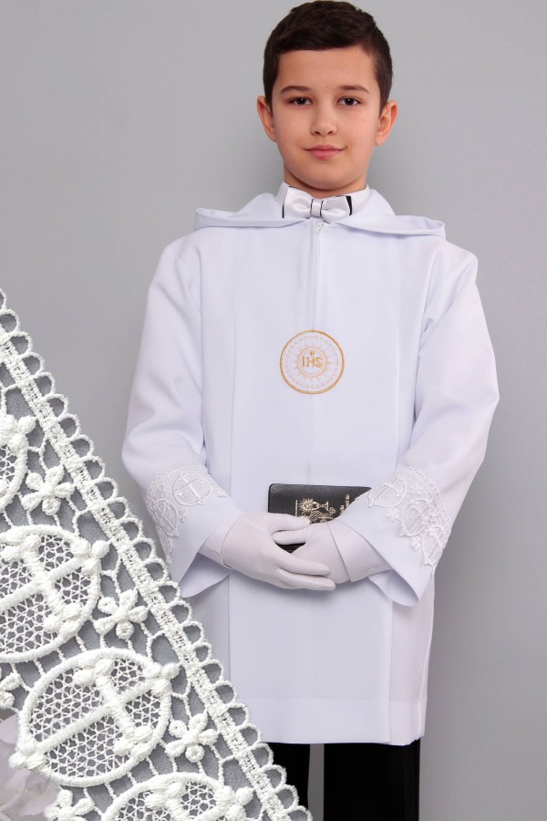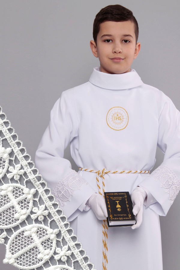Die einzigartige katholische Feier, die der Empfang der ersten heiligen Kommunion ist, erfordert eine sorgfältige Vorbereitung und eine angemessene Kleidung. Gepflegte und elegante Kleidung ist eine Garantie dafür, dass jeder Junge gut aussieht. Darüber hinaus hat die Kleidung einen symbolischen und traditionellen Charakter - sowohl die Farbe als auch die einzelnen Elemente sollen Reinheit, Würde und Unschuld ausdrücken. Unsere große Auswahl an Alben, Anzügen, Hemden und allen Accessoires (wie Hosengürtel, Socken oder Krawatten und Fliegen) für Jungen ermöglicht es Ihnen, das perfekte und zufriedenstellende Outfit für Ihr Kind auszuwählen. Die vorgestellten Produkte sind mit besonderer Sorgfalt und Aufmerksamkeit auf hohe Qualität, die Komfort für jeden Jungen garantiert gemacht.