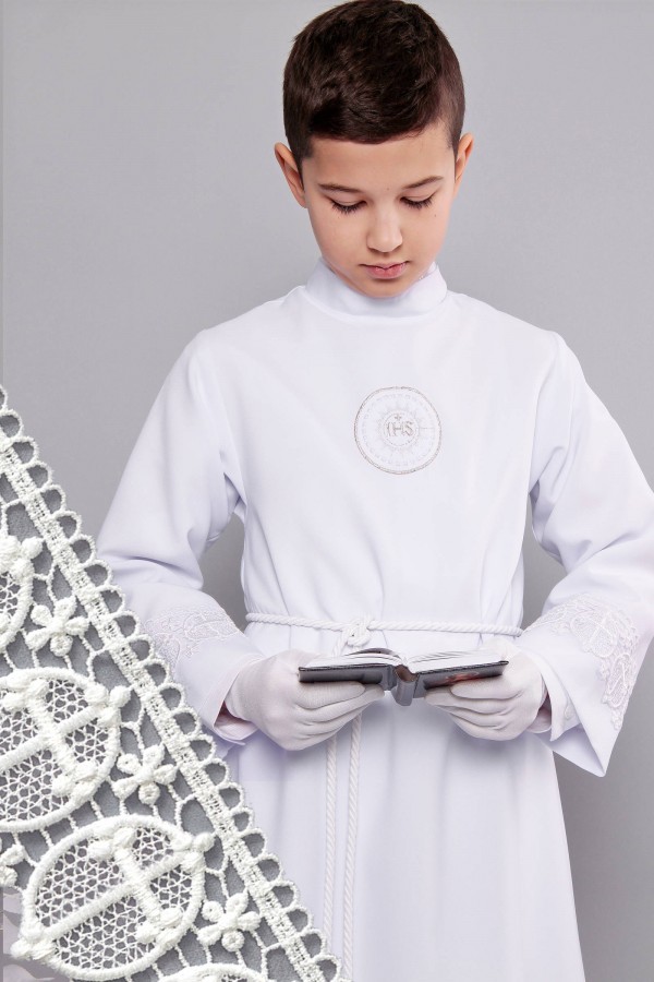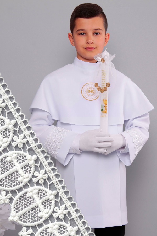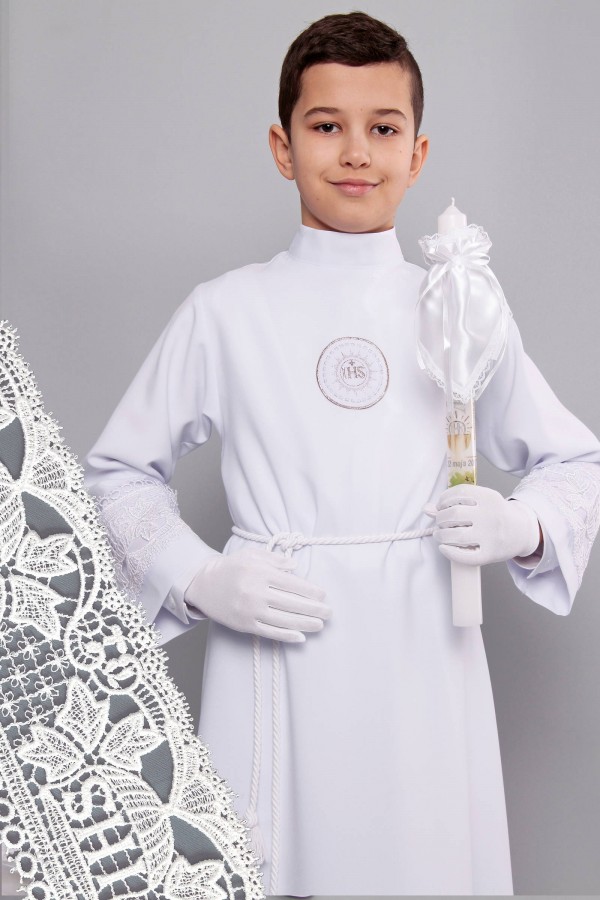 Die einzigartige katholische Feier, die der Empfang der ersten heiligen Kommunion ist, erfordert eine sorgfältige Vorbereitung und eine angemessene Kleidung. Gepflegte und elegante Kleidung ist eine Garantie dafür, dass jeder Junge gut aussieht. Darüber hinaus hat die Kleidung einen symbolischen und traditionellen Charakter - sowohl die Farbe als auch die einzelnen Elemente sollen Reinheit, Würde und Unschuld ausdrücken. Unsere große Auswahl an Alben, Anzügen, Hemden und allen Accessoires (wie Hosengürtel, Socken oder Krawatten und Fliegen) für Jungen ermöglicht es Ihnen, das perfekte und zufriedenstellende Outfit für Ihr Kind auszuwählen. Die vorgestellten Produkte sind mit besonderer Sorgfalt und Aufmerksamkeit auf hohe Qualität, die Komfort für jeden Jungen garantiert gemacht.