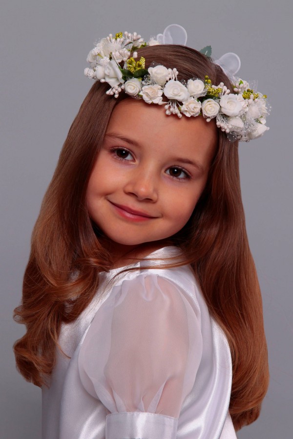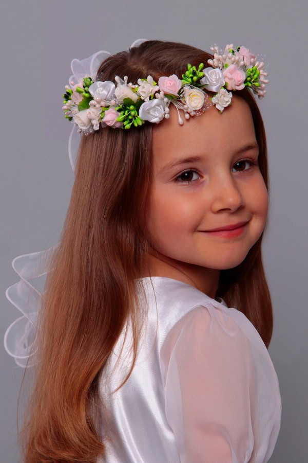 Es wird alles dafür getan, dass das Kind an einem so wichtigen Tag wie dem Empfang des Allerheiligsten Sakraments geradezu perfekt aussieht. Daher ist es wichtig, nicht nur auf das Kleid selbst, sondern auch auf die Accessoires zu achten. Kommunionkränze 'wie lebendig' sind die perfekte Dekoration für den Kopf von Mädchen, die zum Empfang der ersten heiligen Kommunion gehen. Dank ihrer perfekten Verarbeitung mit viel Liebe zum Detail sehen sie perfekt aus. Sie werden mit Blumen hergestellt, die aussehen, als wären sie lebendig', und verleihen ihnen eine unglaubliche Frische und Eleganz. Sie besteht hauptsächlich aus kleinen Rosen in Pastellfarben, die mit Blättern und Perlen verziert sind. Diese schöne Dekoration wird jedes Mädchen hervorragend aussehen lassen.