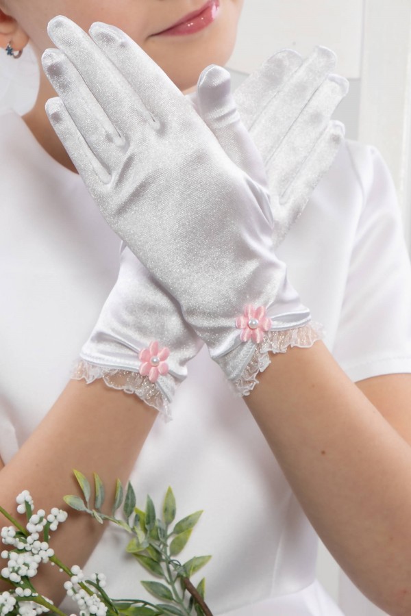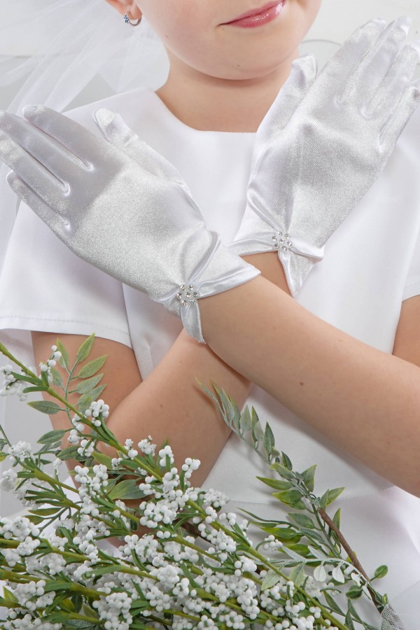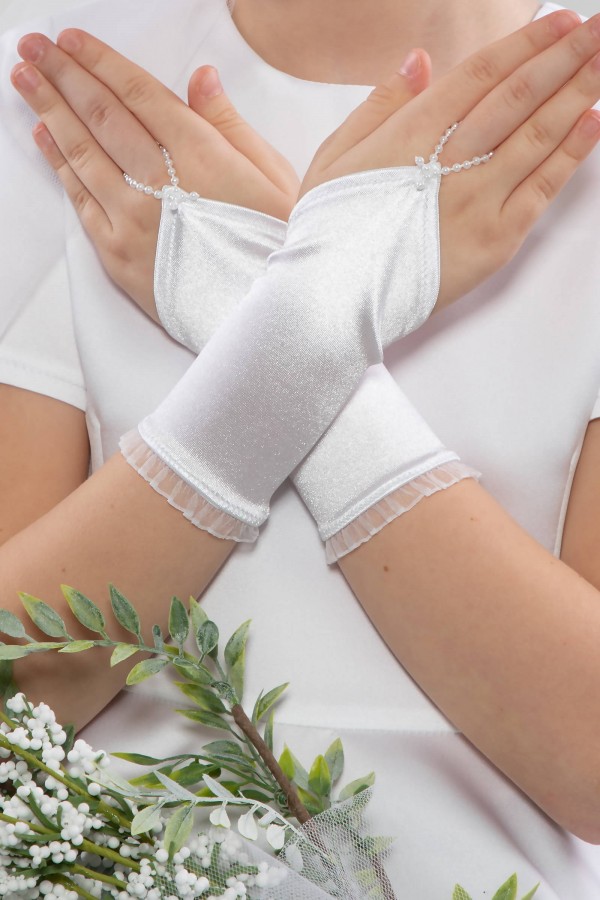 An einem so wichtigen Tag wie der ersten heiligen Kommunion möchte jedes Mädchen schön und gepflegt aussehen. Deshalb lohnt es sich, auf jedes Detail zu achten. Die Kommunionshandschuhe sind ein elegantes Accessoire, das Ihr Kommunionstyling perfekt abrundet. Wir bieten eine große Auswahl an Handschuhen aus elastischem und strapazierfähigem Lycra, das sie weich und bequem macht. Unser Angebot umfasst klassische und Fingerhandschuhe, einfarbige und Spitzenhandschuhe, mit Rüschen, Kristallen oder durchbrochenen Verzierungen. Alle sind so gestaltet, dass sie Schönheit und Eleganz subtil unterstreichen. Es sind sowohl Universalgrößen als auch Größen für größere Hände erhältlich.