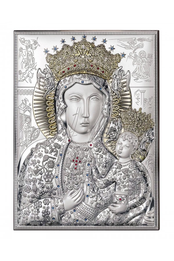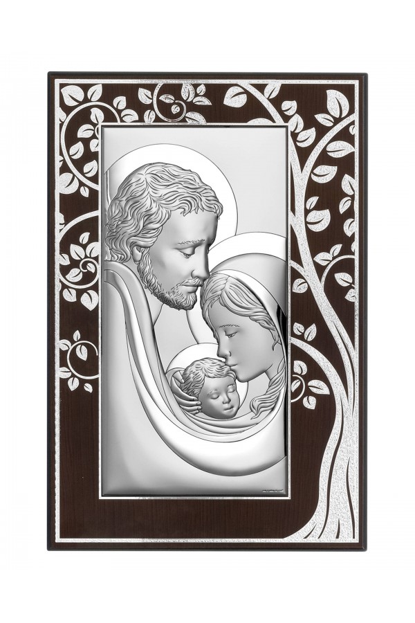 Silbernes Bild mit dem Bildnis des Herrn Jesus - ein Andenken, das im Reliefverfahren auf silbernem Rohmaterial hergestellt wurde. Es ist ein ideales Geschenk zur Erinnerung an das Sakrament der ersten heiligen Kommunion. Das Produkt hat eine elegante Form, die in der Plattentechnik hergestellt wurde, d.h. eine künstlerische Form einer versilberten Platte mit einem geprägten oder gravierten Muster.