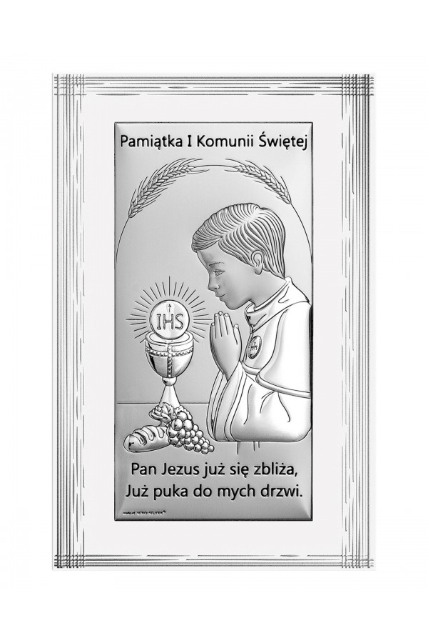 Die erste heilige Kommunion ist ein wichtiger Tag im Leben der Kinder, die von Freunden aus Schule und Familie begleitet werden. Dieses Sakrament gibt den Kindern das Gefühl, dass alle, die ihnen nahestehen, sich an diesem Tag mit ihnen freuen und sie unterstützen. Während der Zeremonie tragen die Mädchen und Jungen, die die Kommunion empfangen, elegante Kommunionkleider oder -gewänder, die die Feierlichkeit des Ereignisses unterstreichen. Damit dieser Tag für immer in Erinnerung bleibt, werden den Kindern häufig Silberbilder und Heiligenfiguren sowie Alben und Bilderrahmen geschenkt. Diese Andenken sind mit detaillierten Kunstwerken und Gravuren versehen, die sie an das Ereignis erinnern. In unserem Sortiment finden Sie viele Erstkommunion-Souvenir-Motive auch mit Kinder-, Hostien- oder Kelch-Motiven.