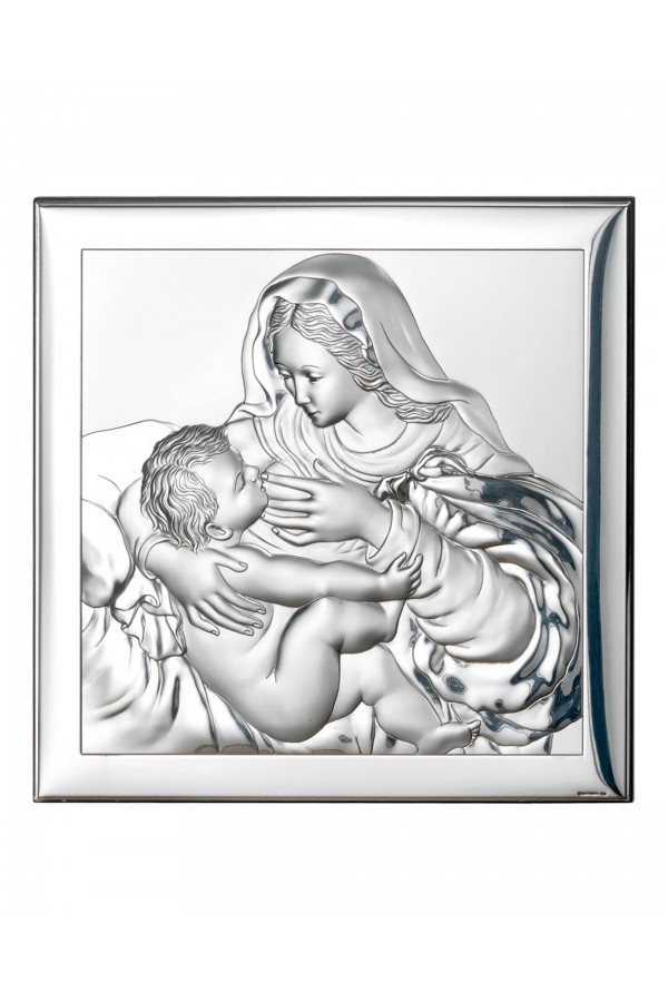 In unserem Angebot finden Sie eine große Auswahl an silbernen Andenken an den Empfang des Sakraments der ersten heiligen Kommunion. Dieser Tag ist für jedes Kind ein sehr freudiger und wichtiger Tag, so dass Bilder und Figuren, die Heilige darstellen, eine Erinnerung an diesen schönen Tag sein können. Souvenirs, die die Jungfrau Maria mit dem Jesuskind zeigen, sind bei Kindern und ihren Angehörigen sehr beliebt, denn ihr Bild bringt Wärme, Geborgenheit, Fürsorge und Hoffnung in ihre Herzen. Sowohl die Bilder als auch die Figuren sind mit viel Liebe zum Detail gefertigt und haben daher einen hohen dekorativen Wert. Silberne Erinnerungsstücke mit dem Motiv der Mutter Gottes sind in vielen Größen erhältlich, so dass das Bild an die Wand gehängt, auf den Schreibtisch gestellt oder in der Handtasche mitgenommen werden kann.
